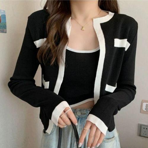 [에이치플러스몰]얇은 무지 크롭 끈나시 가디건 투피스 세트 가을 코디