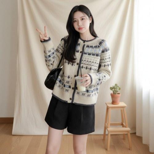 [다잇템]여성용 패턴 U넥 빅사이즈 스웨터 가디건