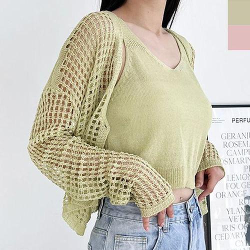[에이치플러스몰]여성 그물니트 나시 가디건 세트 1P 데일리 여름 긴팔