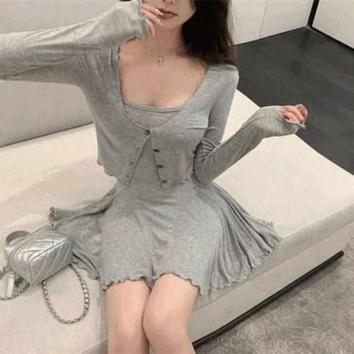 아즈위 여성 슬림핏 니트 원피스 가디건 세트 간절기 여친룩 출근룩 데일리룩