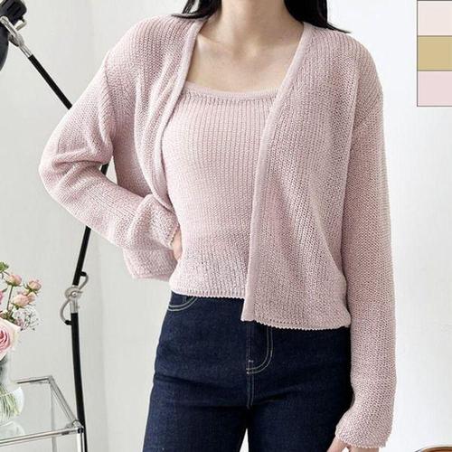 [에이치플러스몰]니트 인기 여름 나시 가디건세트 감성 부드러운가디건