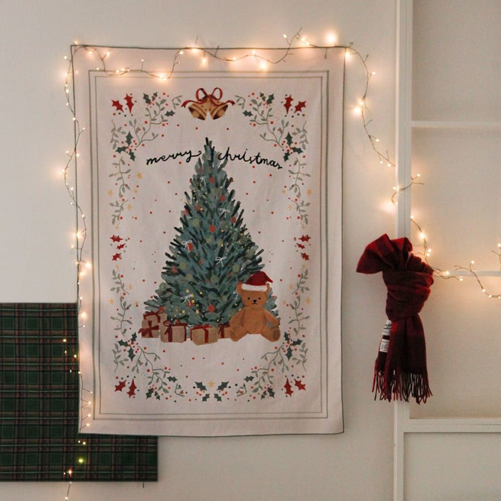 홀리데이 크리스마스 트리 패브릭 포스터 인테리어 감성 가리개 커튼