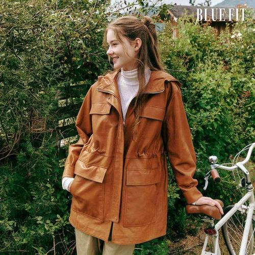 [블루핏]X로보 이태리 베지터블 후드 램스킨 하프 코트