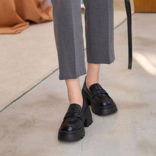 [셀러허브_여성트랜드패션]여자 로퍼힐 페니 통굽 어글리 미들굽 스퀘어 가보시