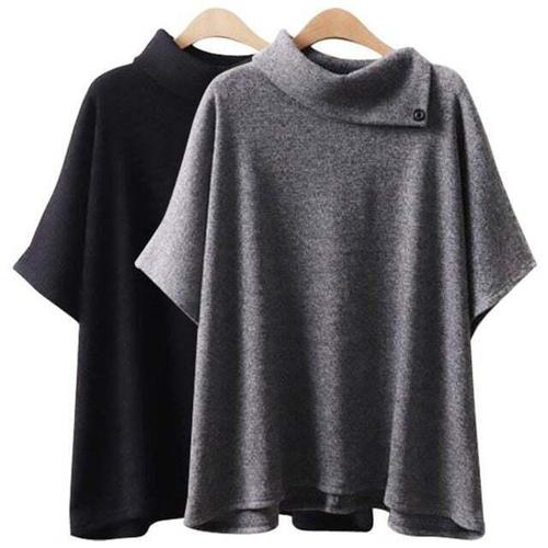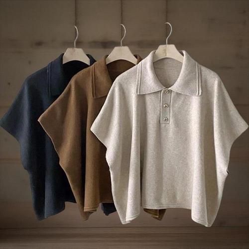 [신상오픈런]여성 반오픈 카라넥 가오리핏 반팔 니트 판초 (40946813)