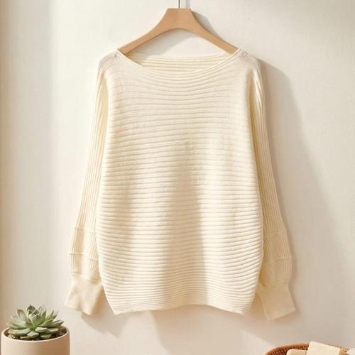 [옷자락] 여성 가오리 소매 느슨한 핏 텍스처 니트 긴팔 티셔츠