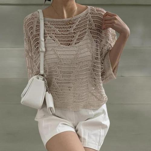 [신상오픈런]여성 가오리핏 반팔 펀칭 니트 여름 보트넥 커버업 스카시 (39114269)