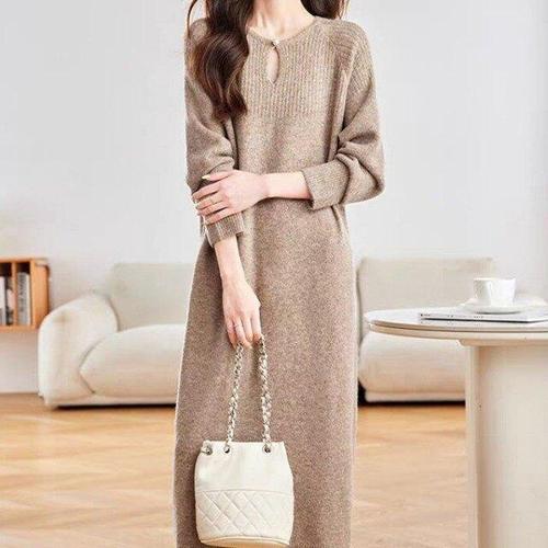 여자 봄 가을 겨울 부드러운 루즈핏 브이넥 니트 롱원피스