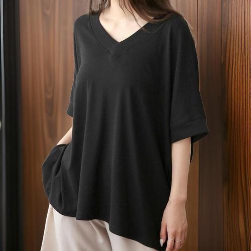 [신상오픈런]여성 브이넥 루즈핏 가오리 반팔 티셔츠 (32331015)