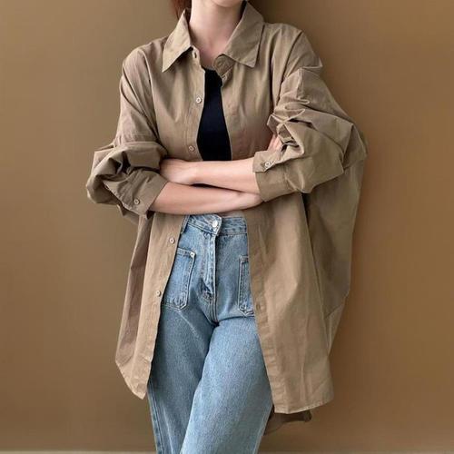 [신상오픈런]여자 셔켓 오버핏 빅사이즈 언발 루즈핏 가오리 셔츠 (41370227)