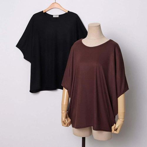 [옷자락]여자 봄 간절기 데일리 라운드넥 루즈핏 가오리 니트 티셔츠