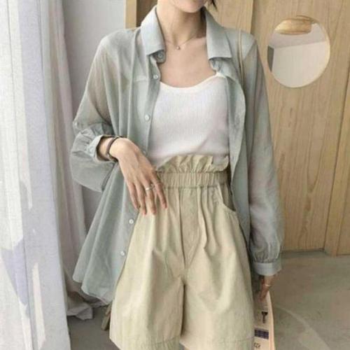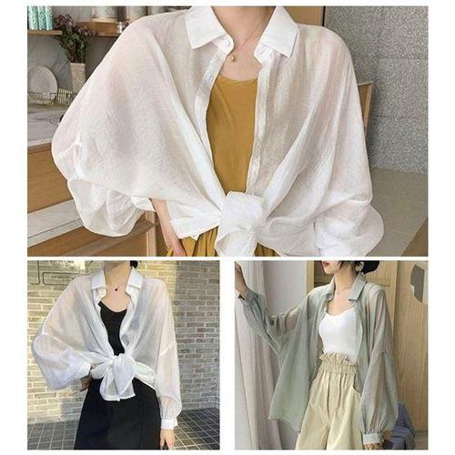 [에이치플러스몰]시스루 쉬폰 가오리핏 여자 셔츠 남방 여름 캐주얼룩