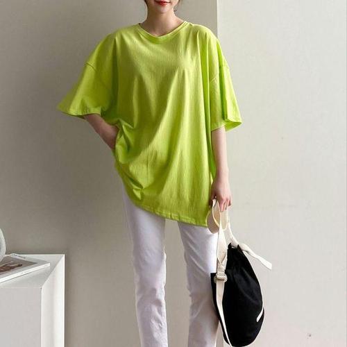 [옷자락]여자 면혼방 스판 가오리 반소매 루즈핏 티셔츠