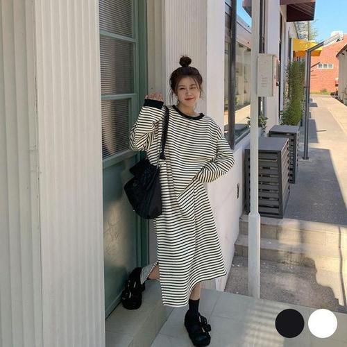 [에이치플러스몰]빅사이즈 겨울원피스 스트라이프원피스 가을원피스