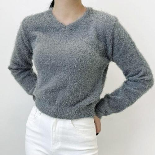 [엄지척]부클 여성 니트 가을 겨울 여자 브이넥 크롭 니트티_19677840_667501