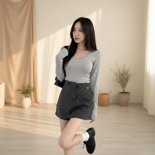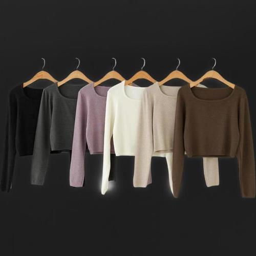 [신상오픈런]여성 크롭 긴팔 티셔츠 스퀘어넥 기본 무지 잔골지 가을 니트 (41265867)