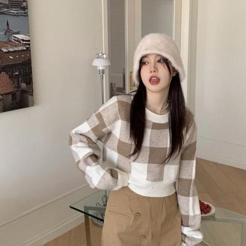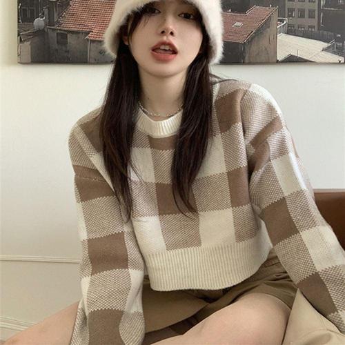 [엄지척]여자 체크 스타일 세미 크롭 니트티 고품질 가을 겨울_19803504_667501
