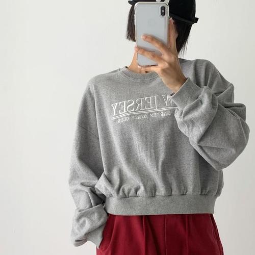 [신상오픈런]여자 자수긴팔티 라운드 세미크롭 박스핏 가을 맨투맨 (41032062)