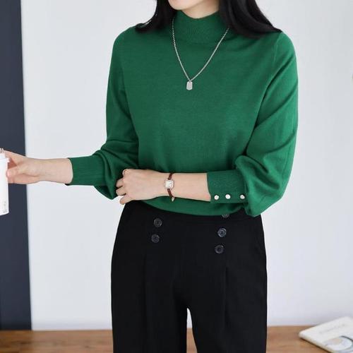 [신상오픈런]여성용 가을 출근용 목폴라 버튼 소매 붉은색 긴팔 니트 (40165575)