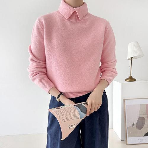 [신상오픈런]여성 카라넥 울 니트 목폴라 스웨터 가을 보카시 스판 (40165578)