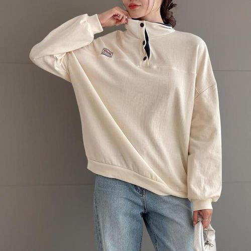 [신상오픈런]여성 오버사이즈 긴팔 티셔츠 패치 디자인 버튼 배색 반목 가을 스타일 맨투맨 (40724215)
