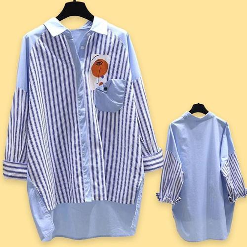 셔츠 스트라이프 가을 봄 여성 여자 긴팔 스프셔츠 여 WFL1ZGD