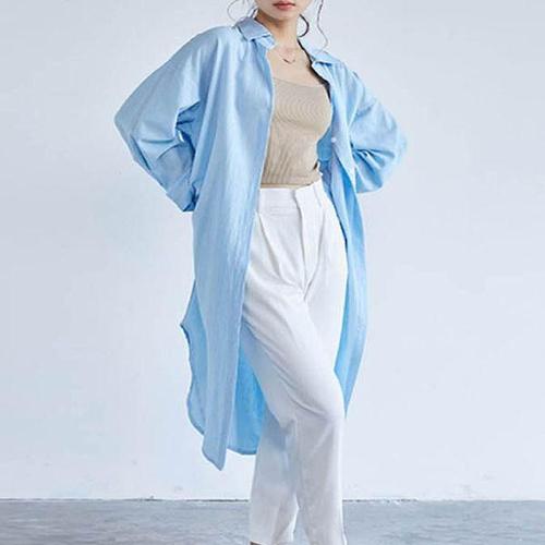 SAHINER 봄가을 여성 데님 셔츠 롱원피스 오버핏 캐주얼 데일리룩 LWBQZ34