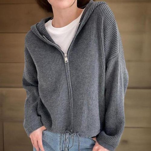 [신상오픈런]여성 골지 니트 후드 집업 가을용 스트링 가디건