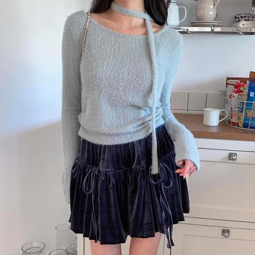 여자 가을 겨울 배색 넥스카프 슬림핏 티셔츠