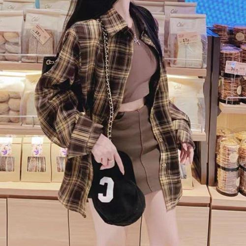 남방 봄가을 루즈핏 루즈핏 체크셔츠 대학생 여자 캐주얼