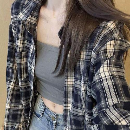 탐리프 여성 봄가을 루즈핏 체크 남방 체크셔츠