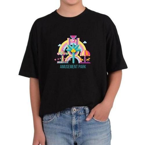 [에이치플러스몰]길단 반팔 USA핏 놀이동산 회전목마 아빠와 같이 가족여행그림 다양한색상 전사이즈