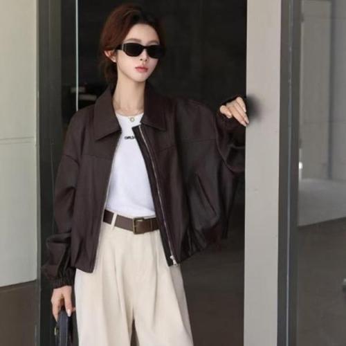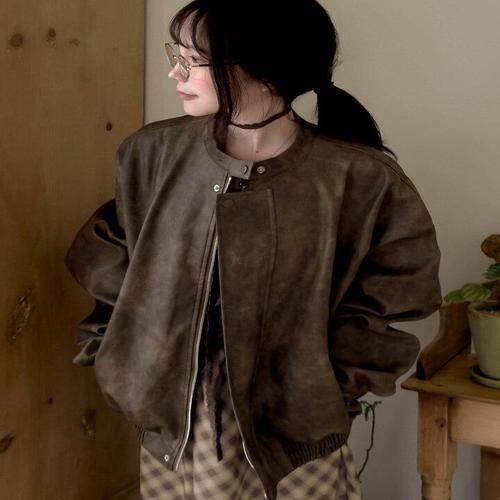 [신상오픈런]여성 루즈핏 카라 블루종 가죽 자켓