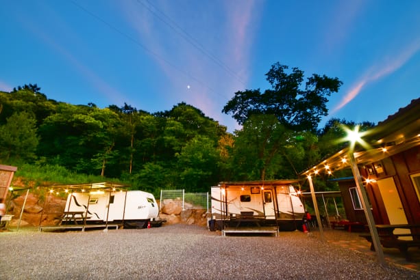 [밀양 탐스팜카라반] 2026년 신축 계곡 및 마운틴 뷰 프리미엄 감성 카라반 캠핑장