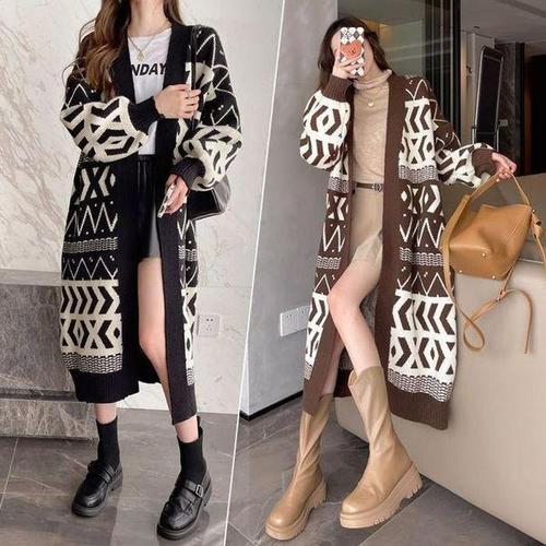[셀러허브_여성트랜드패션]여성 개성있는 노버튼 가디건 무늬 아우터 간절기 롱