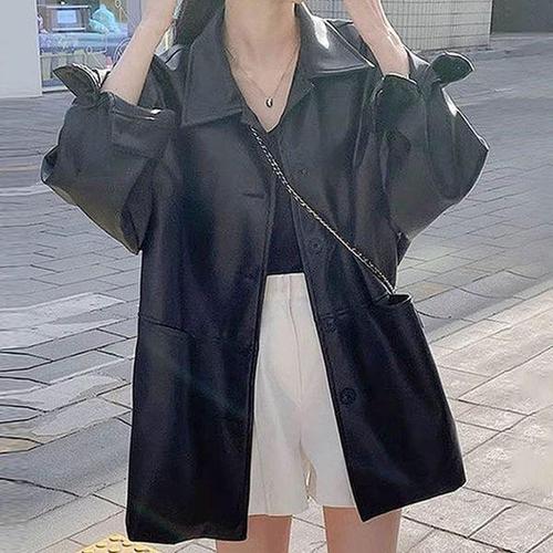[에이치플러스몰]카라 오버핏 라이더 자켓 스트릿 여성 간절기 아우터