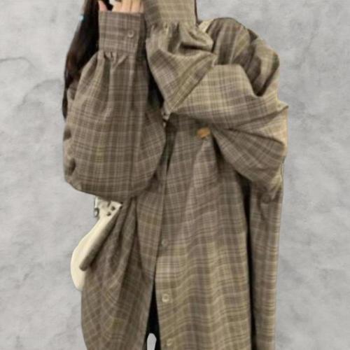 [다잇템]여성 격자 남방 스타일 갈색 FW 캠퍼스 루즈핏