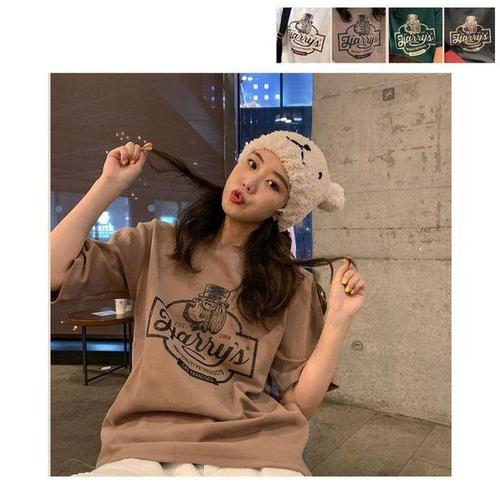 [에이치플러스몰]여성 여름 캐주얼 패션 강아지 프린팅 반팔 티셔츠
