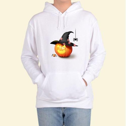 후드티 뒷면 할로윈 호박 거미 마녀 그림 프린팅