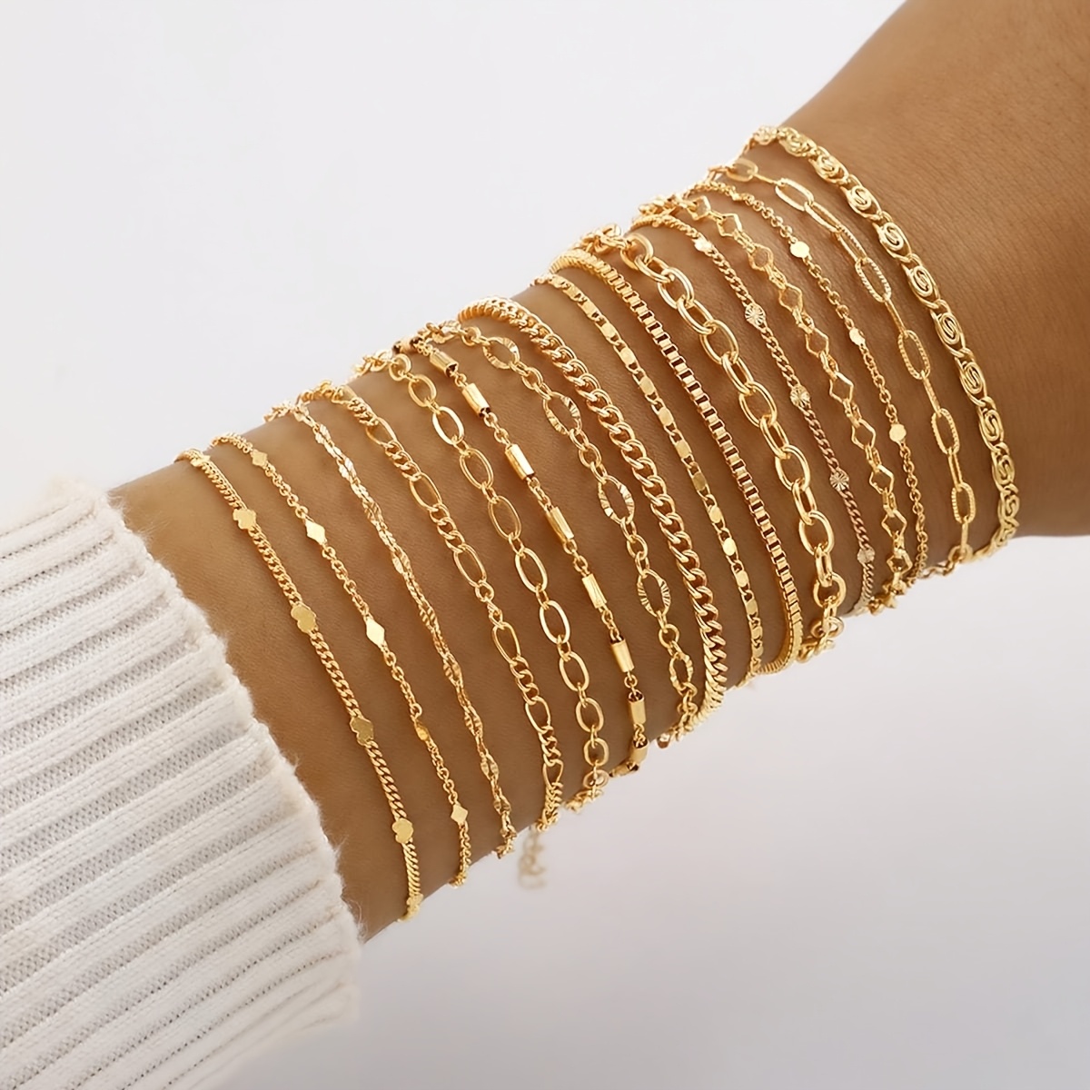 TEMU 16개 패셔너블 우아한 레트로 디자인 다층 기하학적 하트 텍스처 잠금 체인 박스 체인 플레인 체인 팔찌 세트 (휴일 휴가 파티 데이트 선물 데일리 출퇴근 착용)
