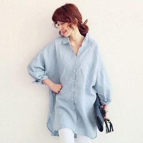 [에이치플러스몰]데일리노멀 머스트해브 단색 듀얼컬러 걸스 롱셔츠