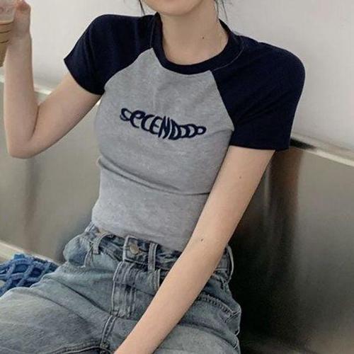 [에이치플러스몰]걸스 베이직크루넥 텍스트 반소매 라운드칼라 티 데일리룩