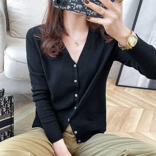 [에이치플러스몰]데일리룩 걸스케이블니트 브이라인 트리밍 실루엣 니트가디건