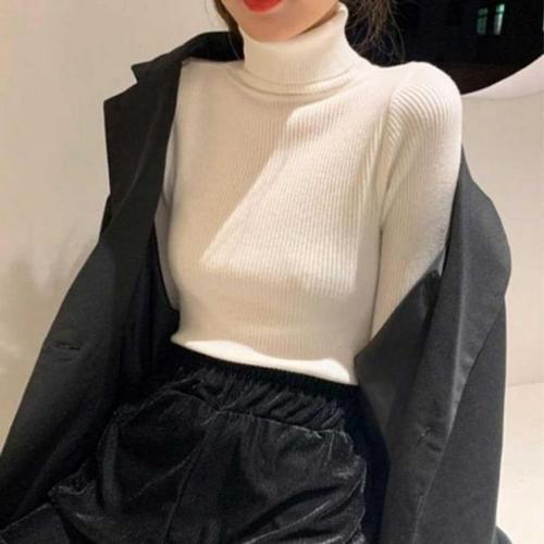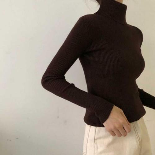 여자 골지 티셔츠 봄 슬림 검정폴라티니트목폴라 (3kgrF)
