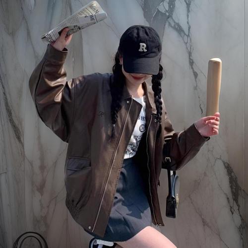 [미라클세븐][M7] 여자 환절기 데일리 검정 바이크 레더 자켓