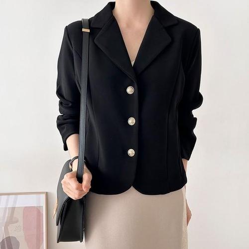 [옷자락] 여자 드뮤어룩 라인 금장버튼 절개 검정 하객룩 자켓