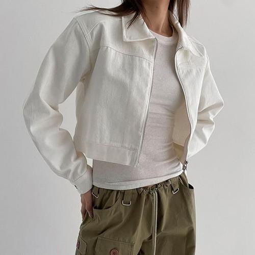 [옷자락] 여자 코튼 흰색 검정 투웨이집업 카라넥 심플 크롭 자켓