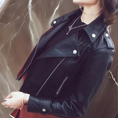 [옷자락]여자 가죽 검정 페이크 라이더 베이직 자켓