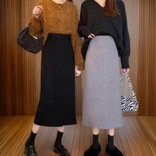 [신상오픈런]슬렌더룩 에이라인 슬림핏 니트스커트 검정치마 (31545980)