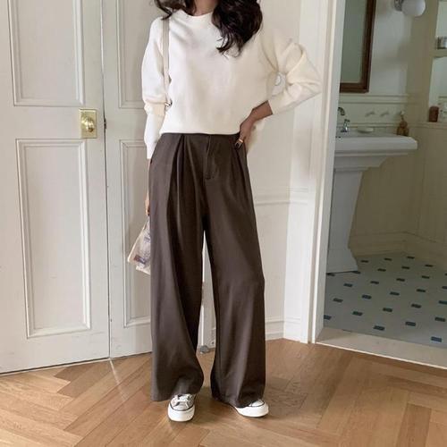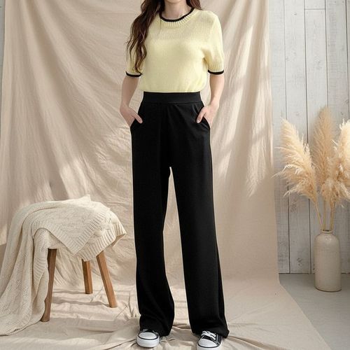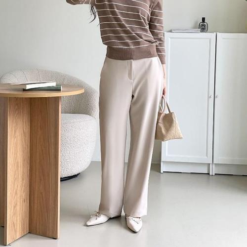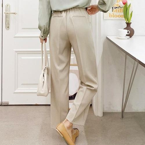 코코라벨라 여성 일자 뒷밴딩 스판 와이드 슬랙스 바지 팬츠